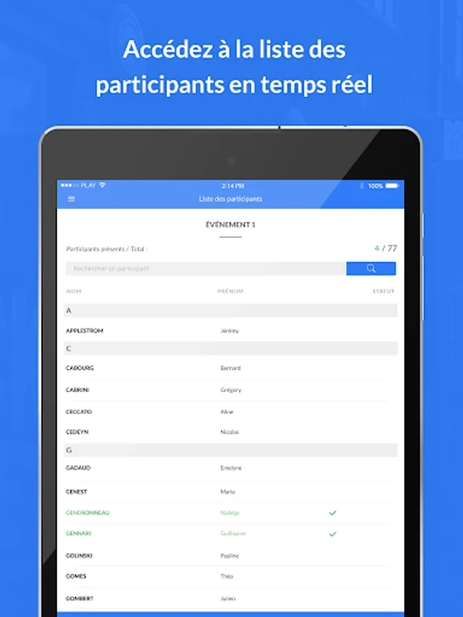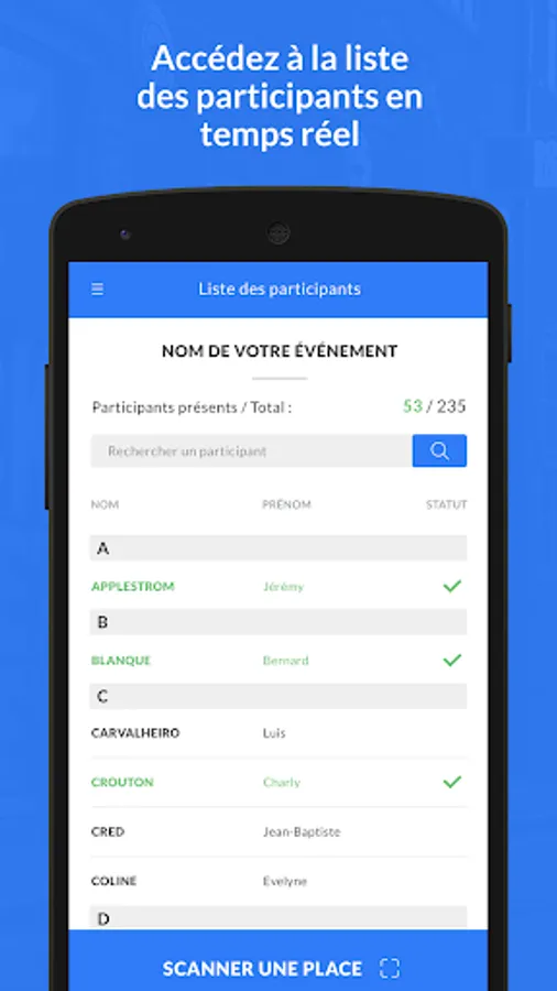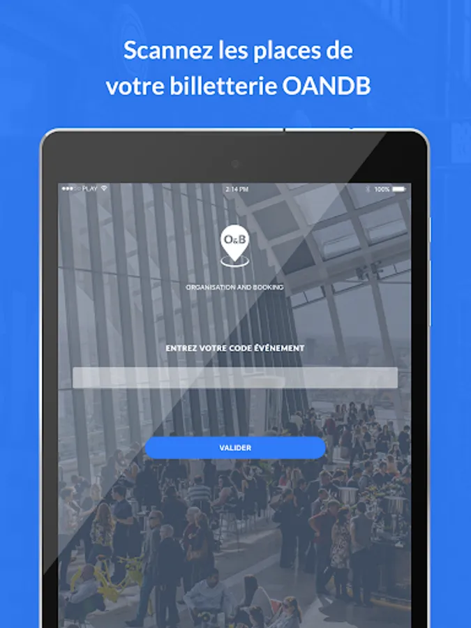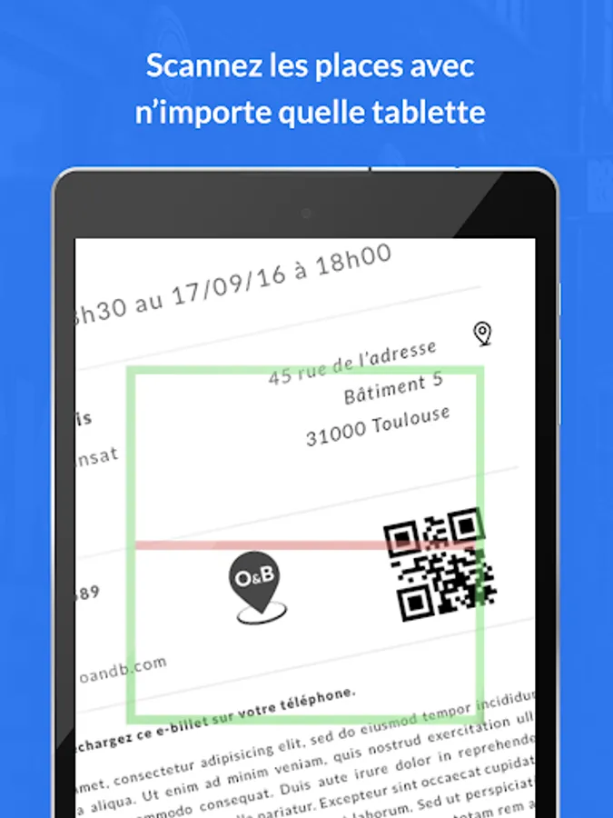 The OandB application allows you to scan the tickets at the entrance to the event organized by OandB ticket.