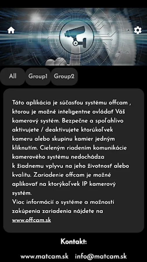 Warning: The application requires the purchase of an external device. More information at www.offcam.sk or info@matcam.sk