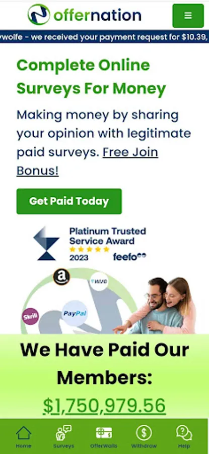 What sets Offernation.com apart from other survey platforms is its fast payments process. Once you've accumulated the minimum payout threshold, you can easily withdraw your earnings through multiple payment options like PayPal, Skrill, or even Amazon gift cards. This means you'll be able to enjoy the fruits of your labor quickly, without any unnecessary delays. With Offernation.com, making money online has never been more efficient and convenient.