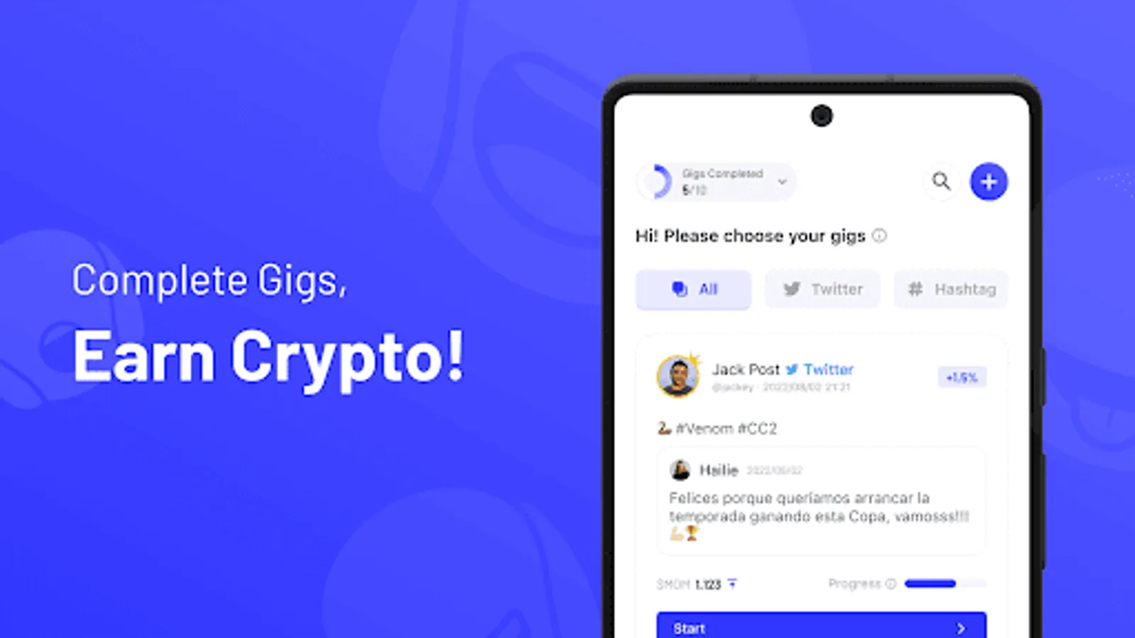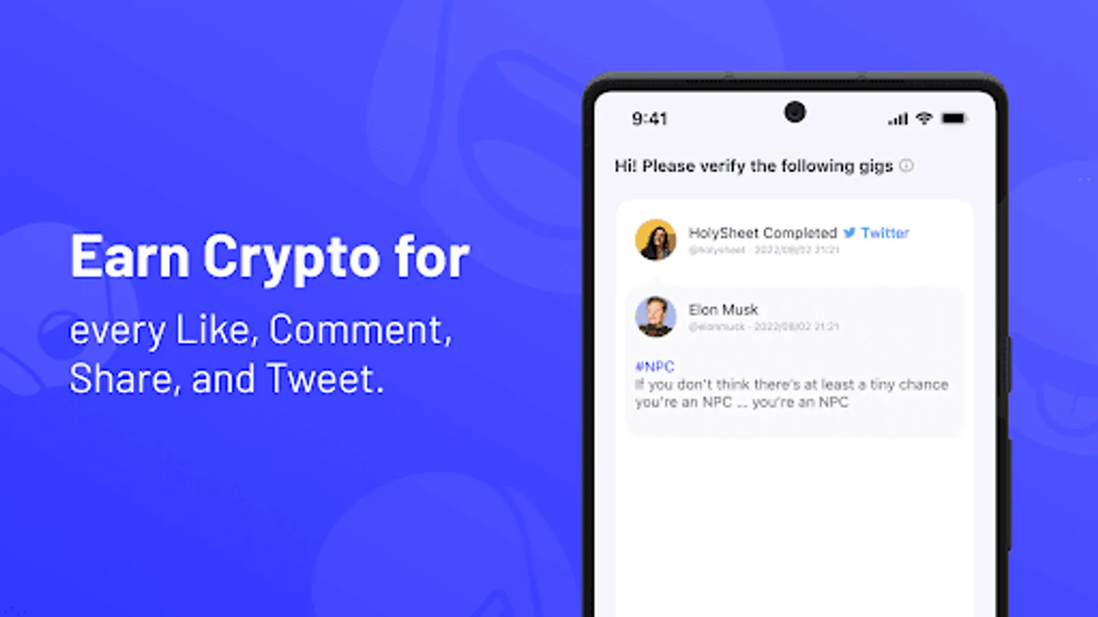 With Tweet-to-Earn and Verify-to-Earn options, every social interaction counts towards your earnings. Get started by earning crypto for free with your Twitter account. Every time you like, comment, share or tweet, you earn cryptos.