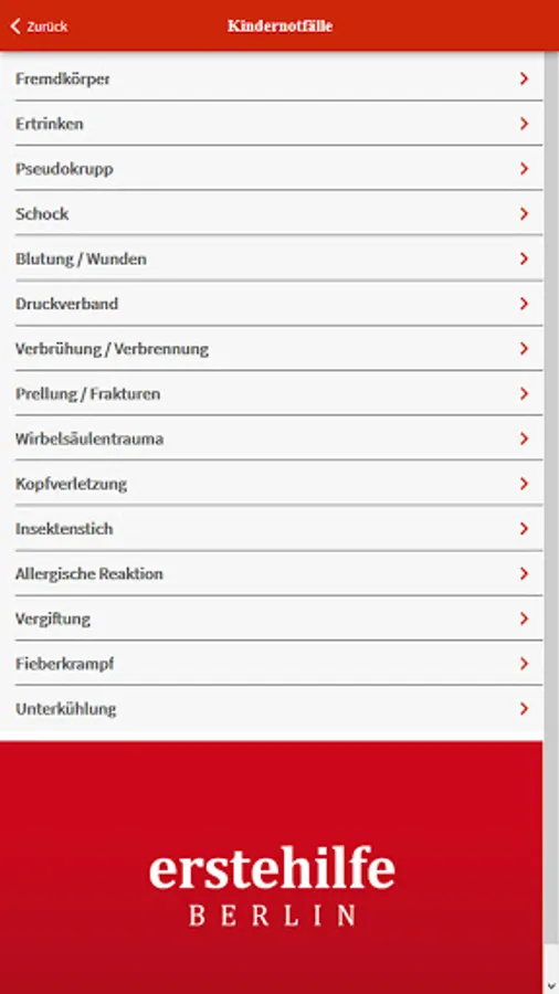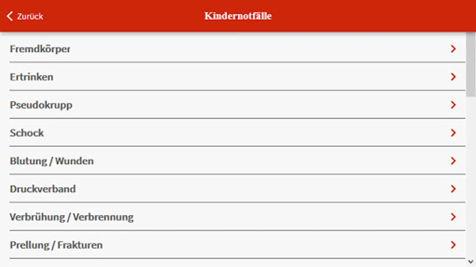 A simple app guide, short and easy-to-understand explanations guide you through first aid measures for infants and toddlers.
