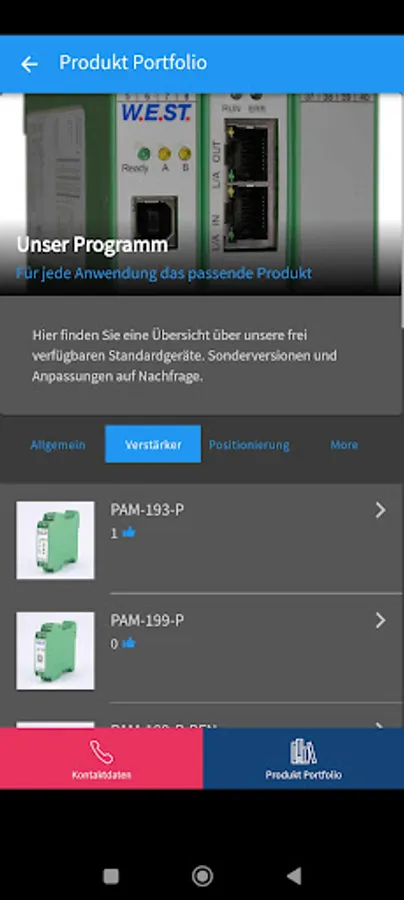 The app includes the portfolio of standard products from W.E.St. Electronics Ltd. These are electronic regulation and control assemblies for predominantly industrial hydraulic applications. According to these, the modules were roughly sorted. You will find the most important features and block diagrams for selecting a device suitable for the respective application, as well as the technical data for detailed planning of the integration. For further information, there are links to the technical documentation and application aids on the company website, as well as the corresponding contact details.