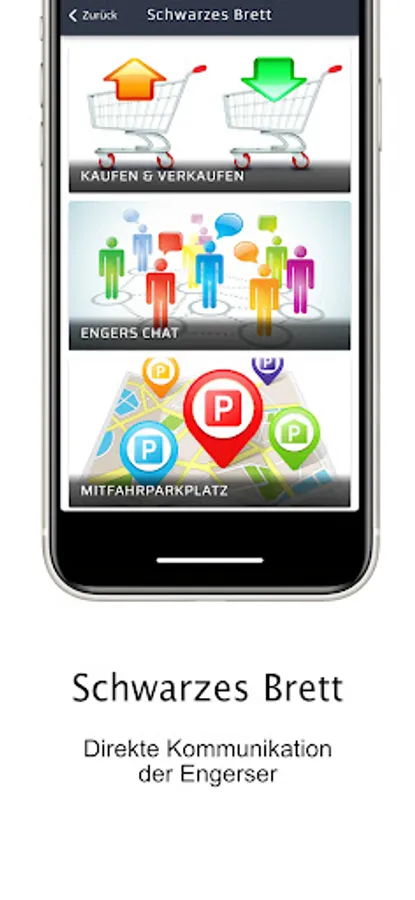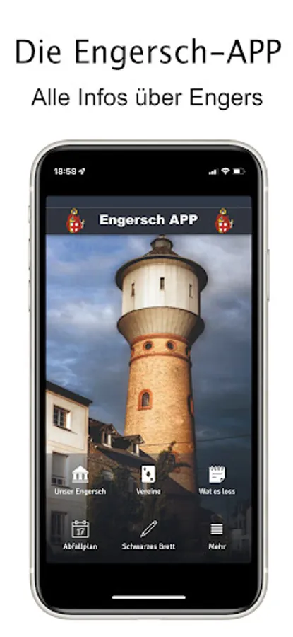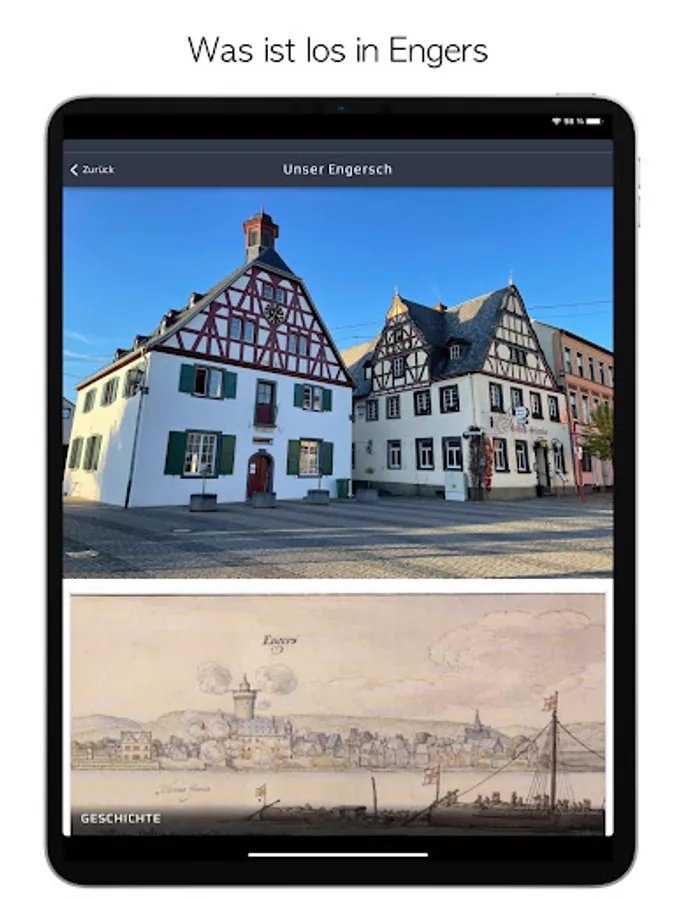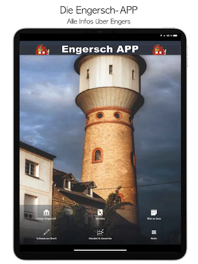 Village app for the municipality of Engers am Rhein. Here users can call up current information from the location and are informed about events and the like. Furthermore, users can exchange ideas via a pin board. In addition, the clubs and businesses active in the district are presented.