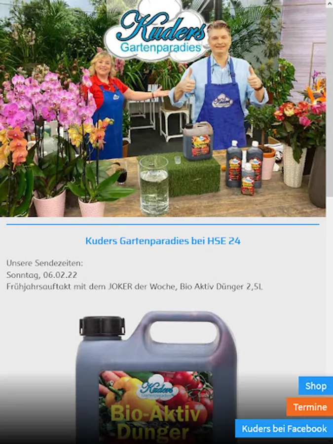 Always be up to date. All broadcast dates at HSE, all products including planting instructions and all offers in the Kuders Gartenparadies shop. Here you won't miss anything anymore.