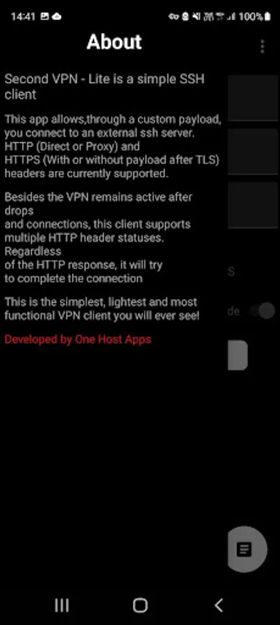 This app is a simple, lightweight and fast client that allows the user, via an HTTP or HTTPS header, to initiate a VPN connection with an external SSH server.
