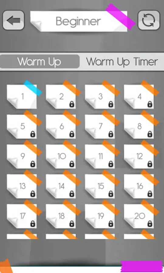 1. Warm Up - Play 100 different levels in the 'Warm up' mode. It will be easy just to get you into the groove!