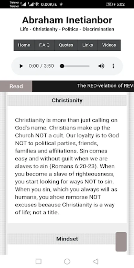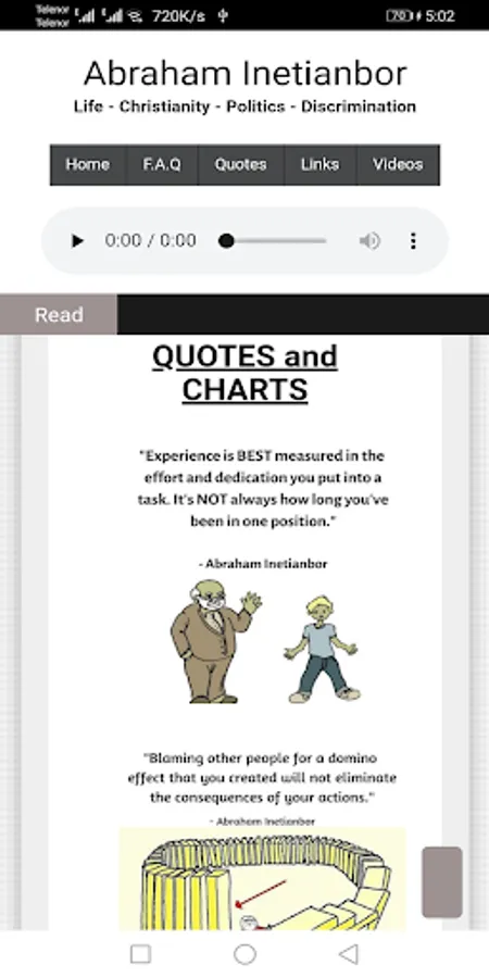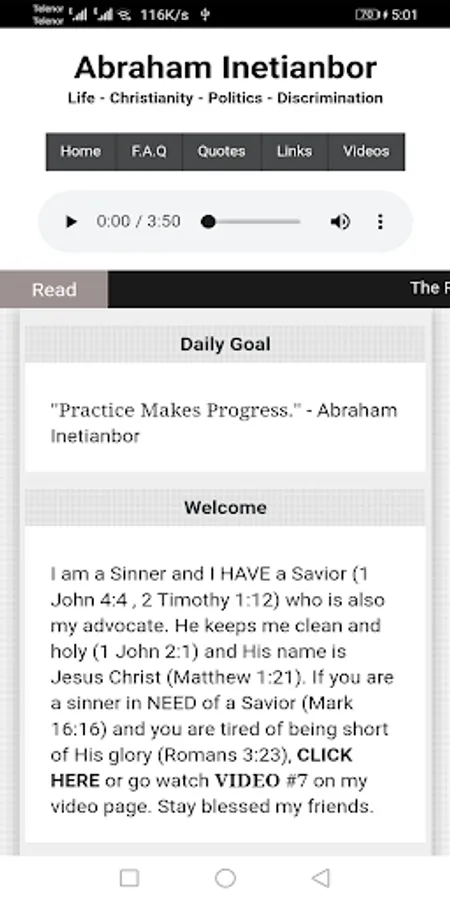 The love of money is the root of evil but poverty does not guarantee holiness." -- "Practice Makes Progress." -- "Policy is to Politics what Respect is to Humanity" -- "Wrong is wrong, regardless of who the person is, including me, myself and I." -- "The only way to let the Bible speak is to stop telling the Bible what to say." -- "Love cannot be defined unless it is practiced.