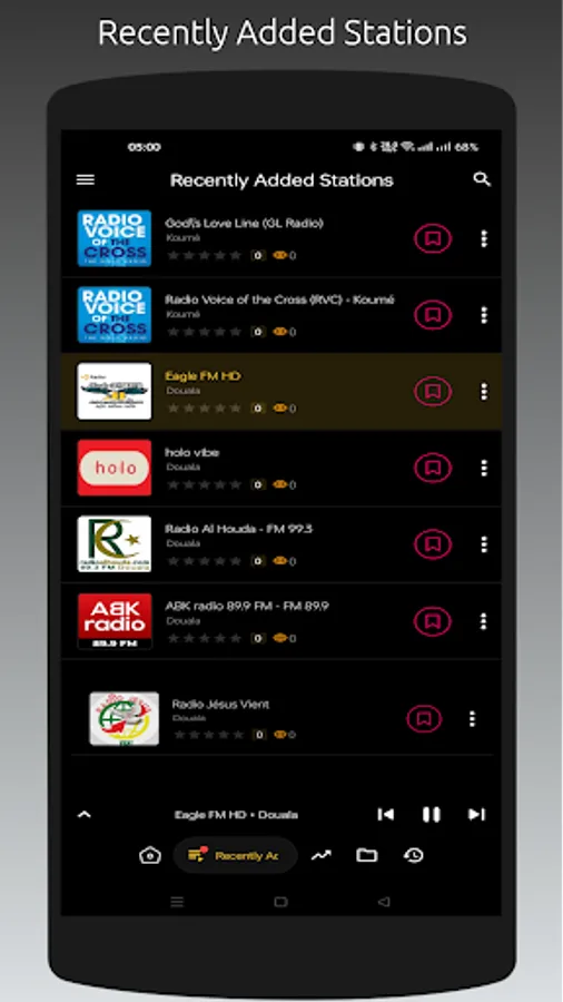 - Recently played stations list