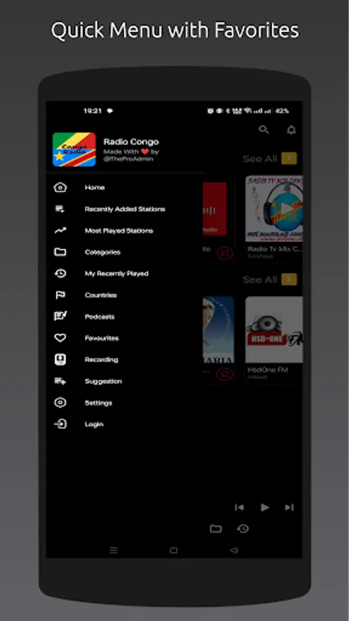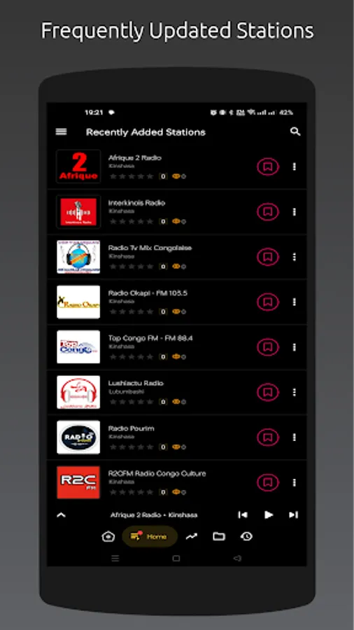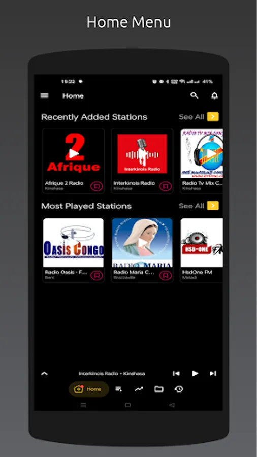 - Recently played stations list