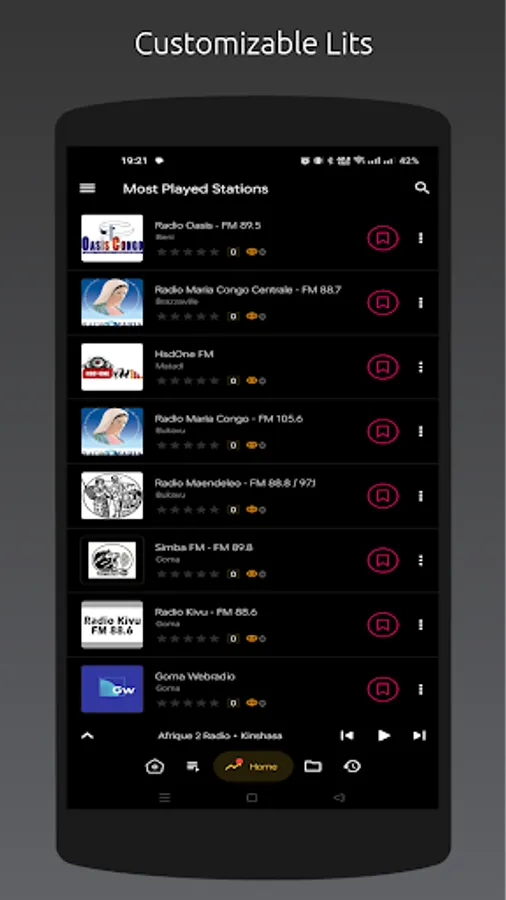 - Most played stations list