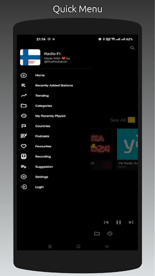 The Radio Stations are provided for Listening, Music, Entertainment, News, Reporting & Educational Purposes only.