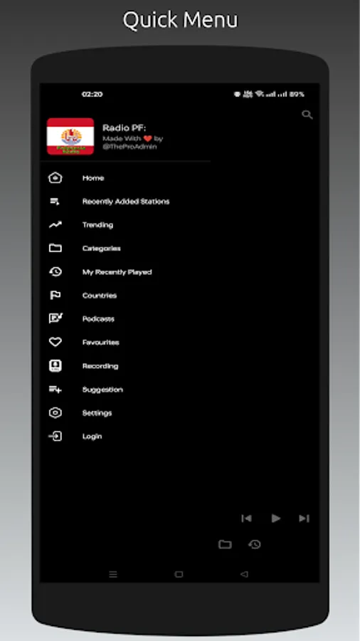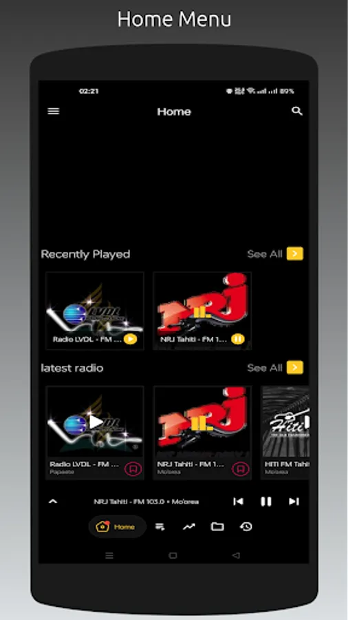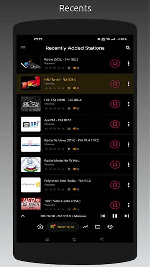 - Recently played stations list