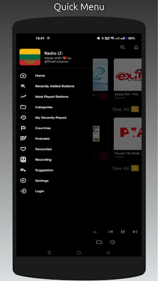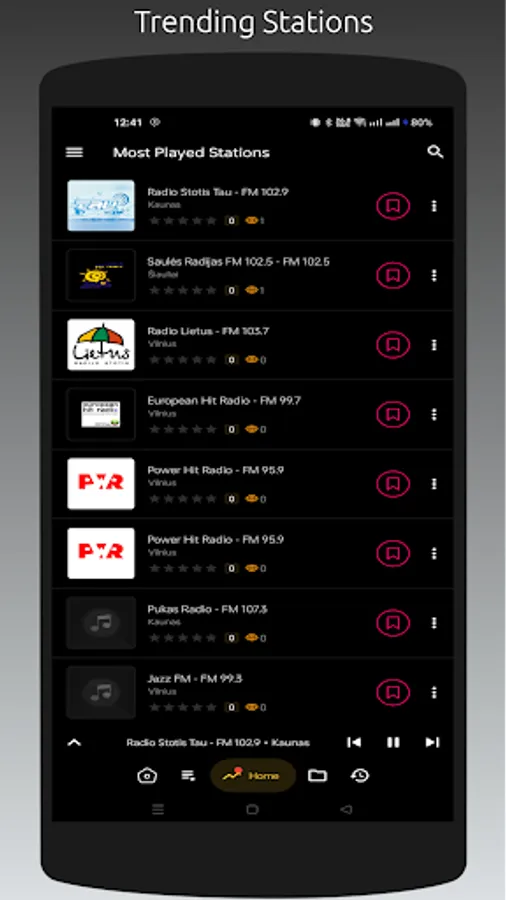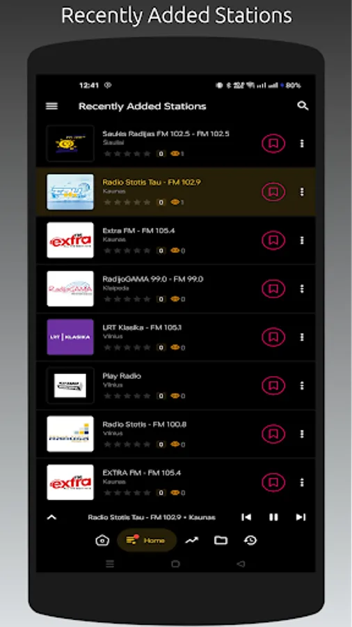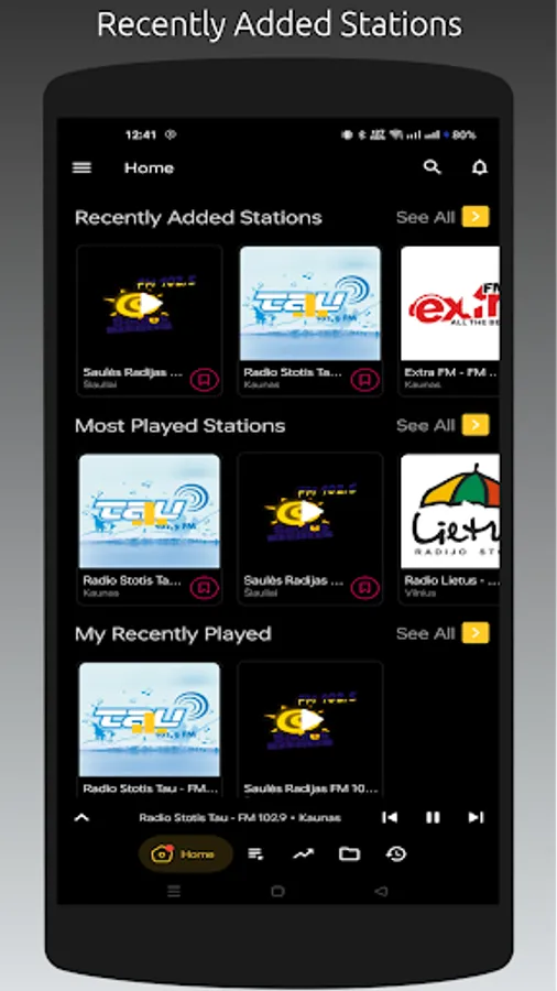 - Recently played stations list