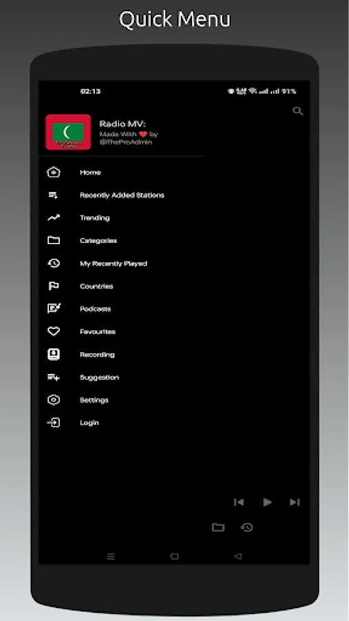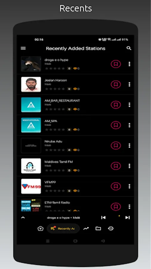 - Recently played stations list
