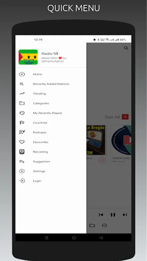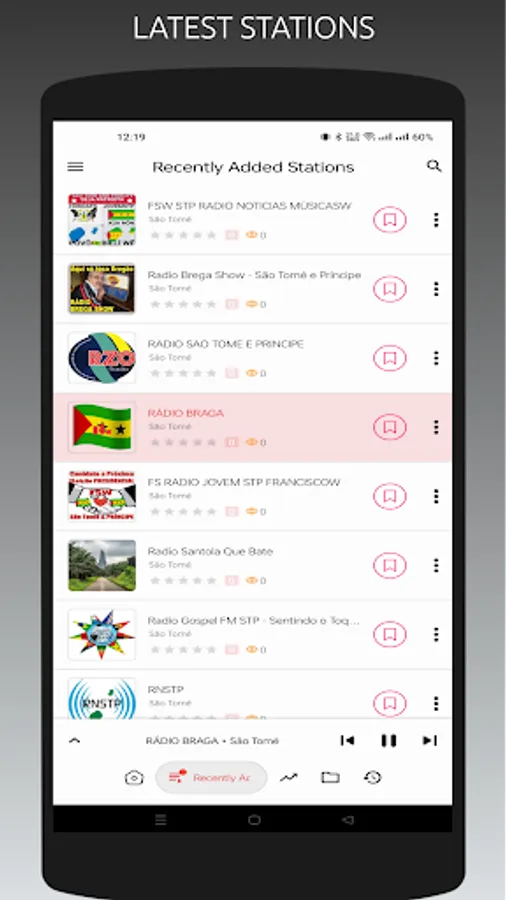 - Recently played stations list