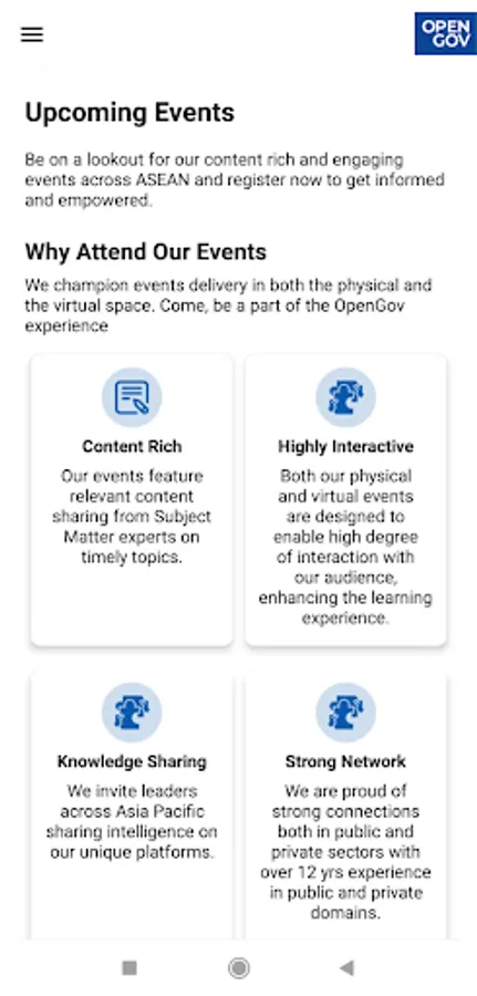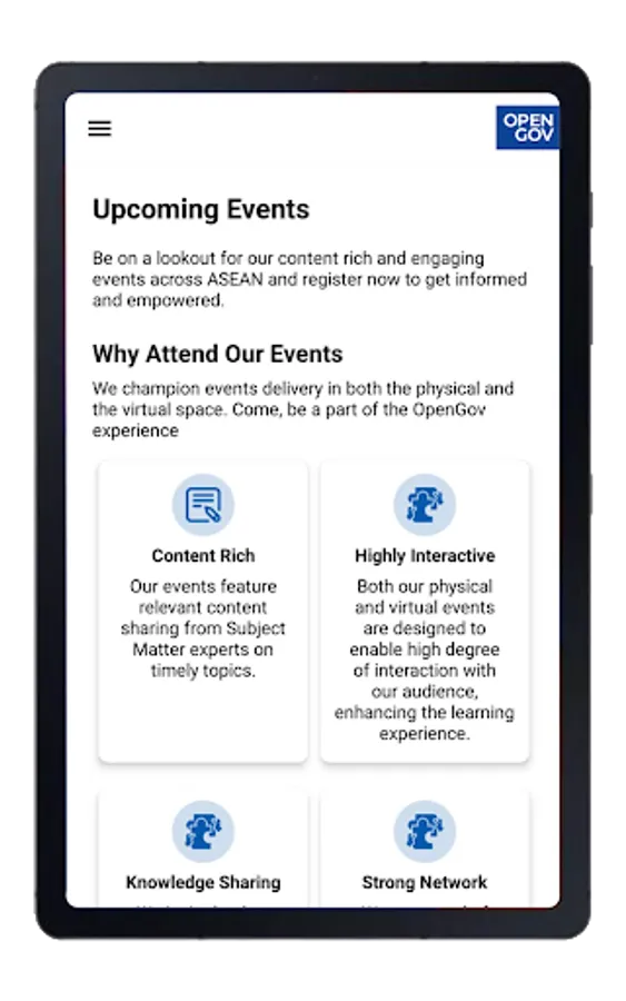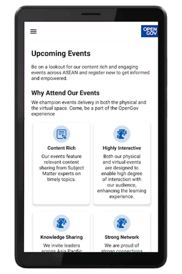 OpenGov Asia organises C-level interactive sessions across the region, where valuable insights are shared by senior digital executives and leaders from around the world. Ranging from large-scale OpenGov Leadership Forums (200-600 attendees) to moderate-size Tech Day (40-60 attendees) to their intimate, bespoke Breakfast Insights (20-30 attendees), these sessions are invitation-only, closed-door engagements.