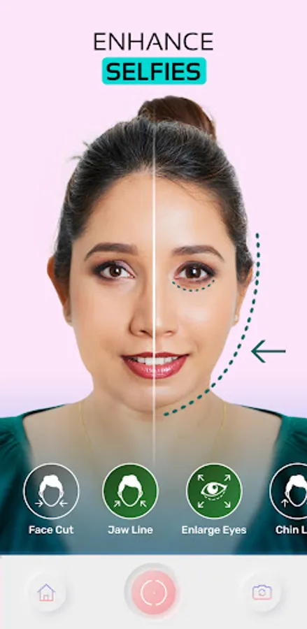 Along with virtual makeup and virtual hair color try on, use SuperTouch as a photo editor app. Use our selfie editor and enhance your photo. Reshape your jawline, give yourself a chin lift, enlarge your eyes, and slim your face.