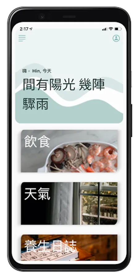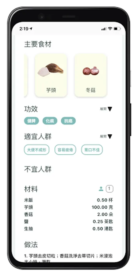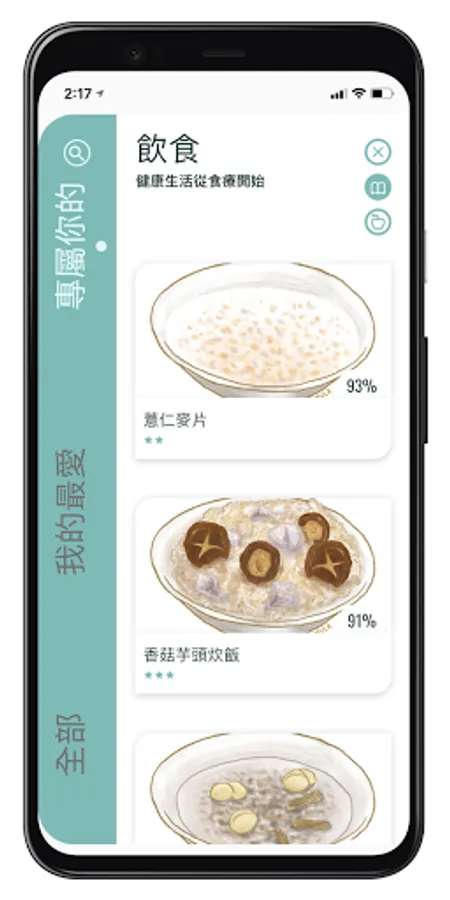This health management mobile app provides customized diet therapy suggestions by matching physique with recipes. It also provides an ingredient library to help users understand the functions of each ingredient. The user needs to fill in the physique questionnaire on a regular basis to obtain weekly dietary recommendations that match the physique.