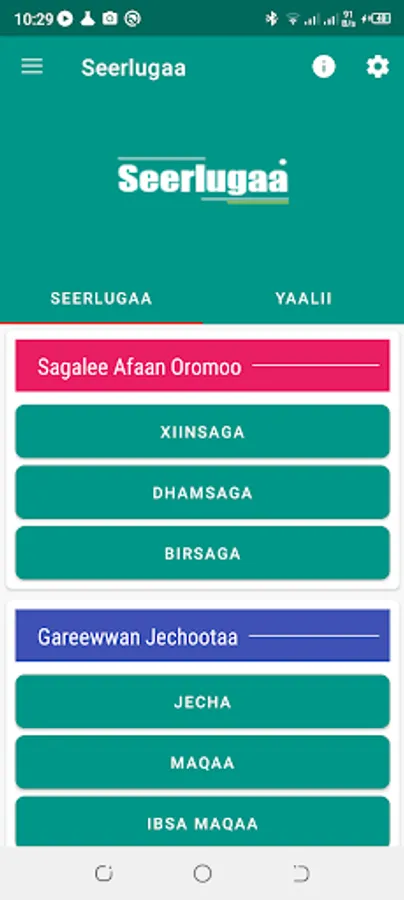Seerlugaan mosaajii seerlugaa afaan oromoo haala salphaan barsiisu yoo ta'u mata dureewwan heddu uf keessaa qaba. applikeeshiniin kun fayyadamtoonni rakkoo tokko malee seerlugaa afaan oromoo akka dubisanii baratan taasisa. dabataan mosaajjiin kun yaaliifi qormaata of keessaa qaba.