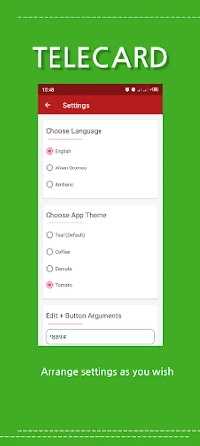 * You can customize the + button with your own USSD code like *999*1*1*...# or phone number.