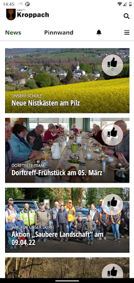Welcome to Kroppach in the beautiful Westerwald. You always want to be up to date and don't want to miss anything that affects your local church? Then use the local app to find out about current topics in the local community of Kroppach, but also about local clubs and groups as well as local events. By taking part in surveys, you also have the opportunity to actively participate in your home country.