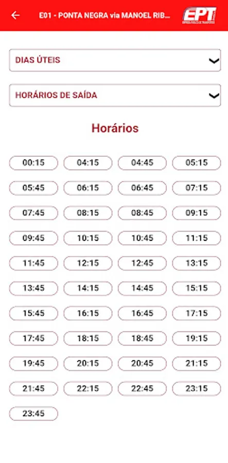 With it you can access the zero tariff lines, consult timetables, consult itineraries, send a direct request to the ombudsman, call the ombudsman, send a WhatsApp to the ombudsman, access the official EPT website via direct access link and view the buses in the fleet in real time.