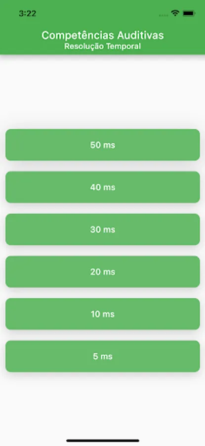 The Temporal Resolution - Hearing Skills application is an APP that contains 24 tracks with 10 exercises each, developed by the speech therapists Filipa Branco and Sara Araujo, under the guidance of Professor Cristiane Lima Nunes, with the objective of developing the Central Auditory Processing, more specifically the temporal resolution auditory competence.