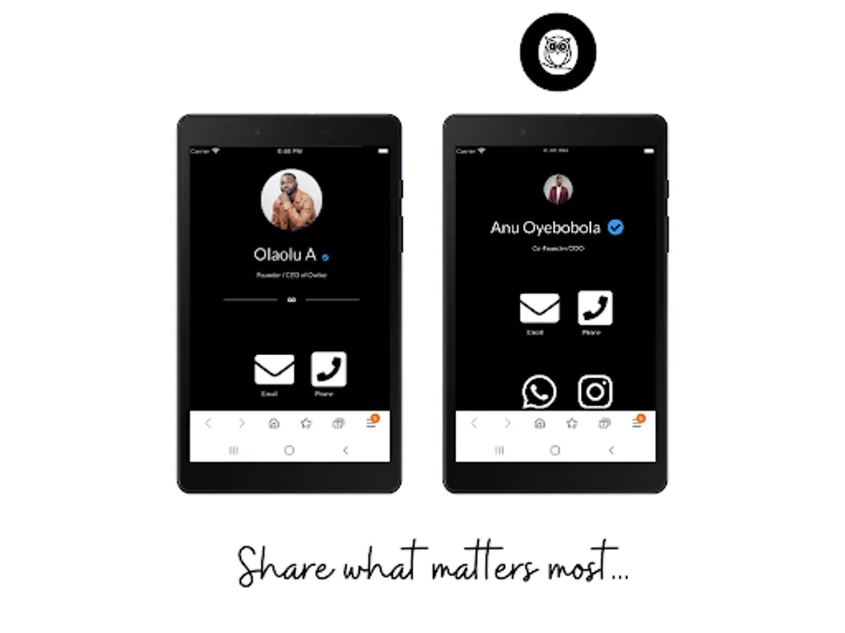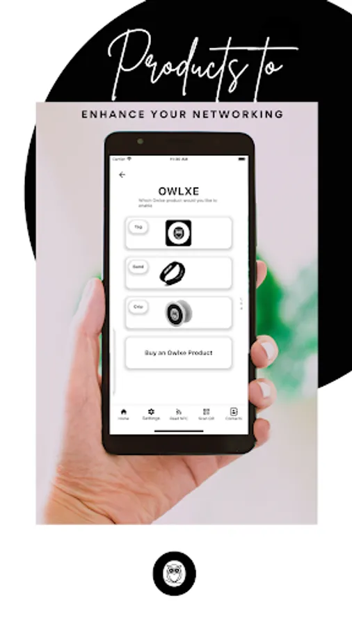Our unique product line allows you to quickly share your business info, social media links, products for sale, video links and virtually anything worth sharing with just a tap. The best part is the other person doesn't have to have our app downloaded or own an Owlxe device to start engaging.