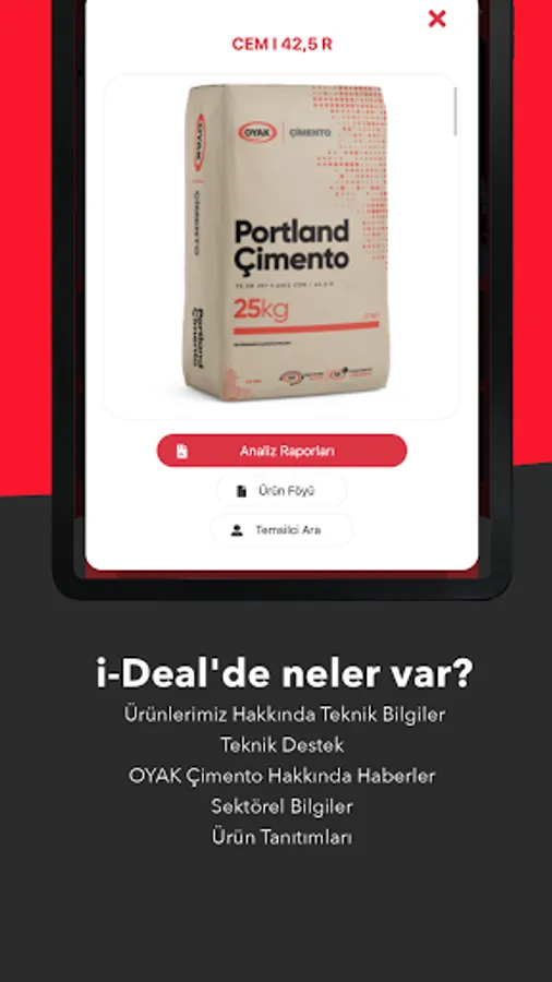 "Turkey's largest cement brand" proudly carrying the vision OYAK Cement, dealers and customers in order to be integrated in the digital space and to facilitate access to products with i-Deal has launched the mobile app.