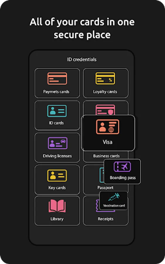 blockIDs has the capability to contain everything that is currently hosted in your leather wallet, this goes from ID card, driving license, biometric passports to loyalty card, vouchers, bills, receipts, credit cards, cash and crypto.