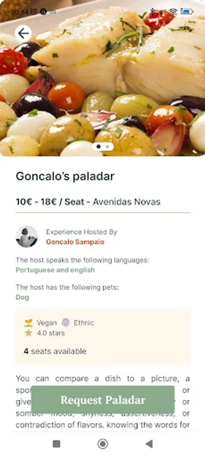 The Paladar application thus consists of a network for sharing meals in private homes - designated in the application by Paladares - among those who are willing to be hosts (either because they like to cook, or because they want company or simply because they enjoy meeting new people), and tourists looking for an authentic tourism experience, interacting with local people and learning about their culture.