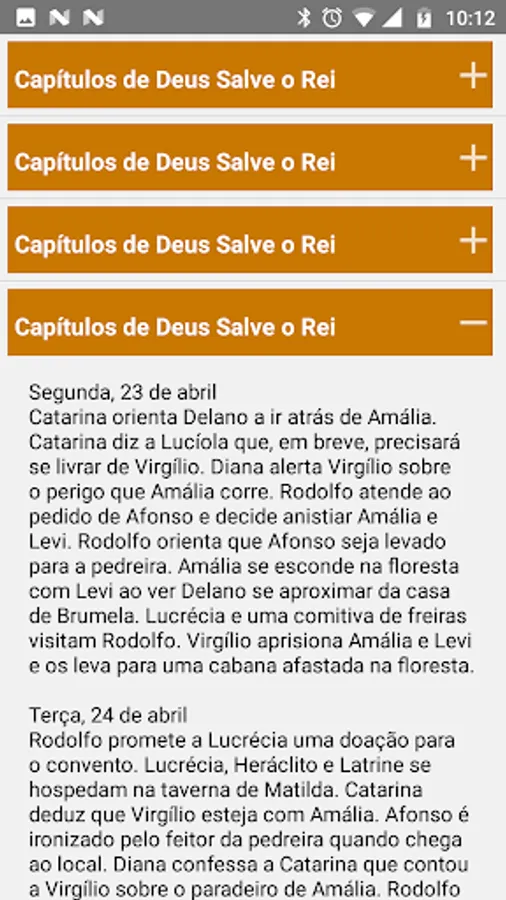 In the application you can accompany the summary of the chapters, see the profile of the characters and the synopsis of the novel.