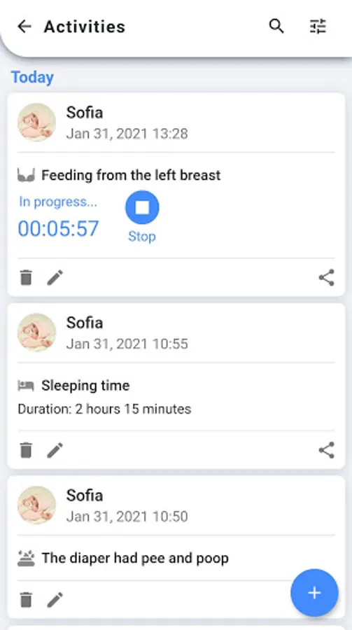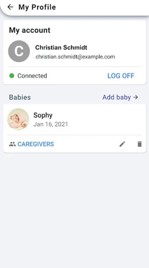 • Caregivers: share your baby's activities with caregivers, such as your partner or babysitter, so that they can also record activities from their devices.