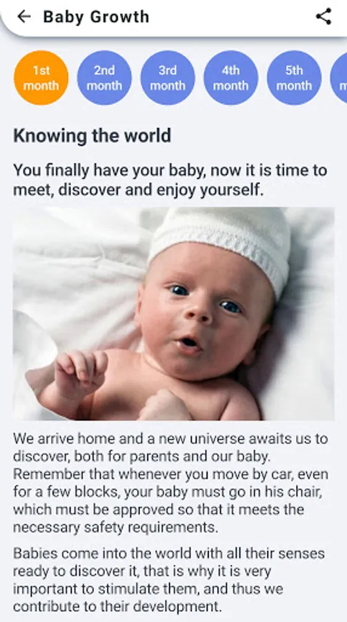 • Month by month details about how your baby is growing. Know in advance what to expect in each month of your baby.