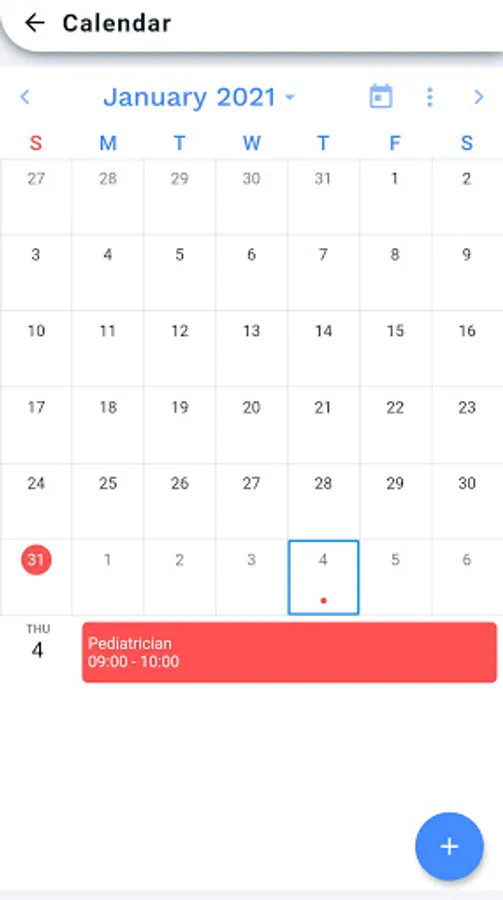 • Calendar: use the calendar to record your baby's events, such as a pediatrician appointment, vaccination, or a medical study. Automatically save information to the cloud for added security.