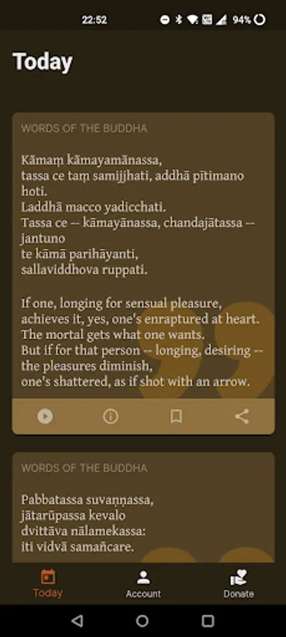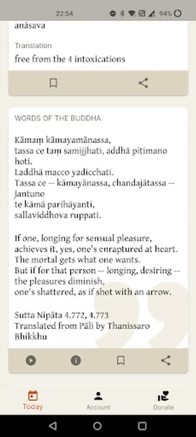 This app provides a stream of Pāli vocabulary and inspirational quotes, updated regularly.