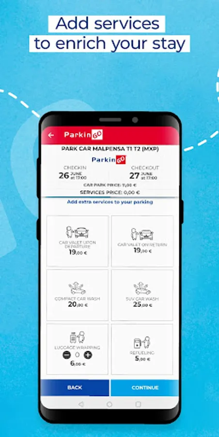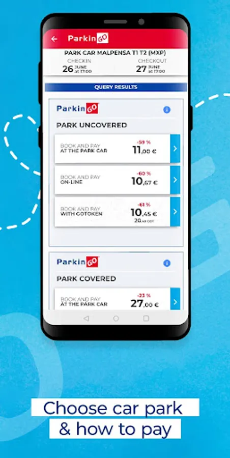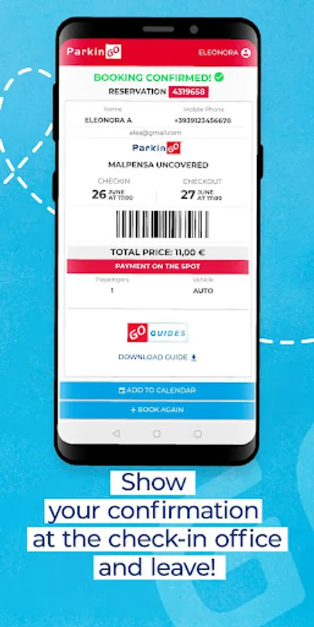 The ParkinGO app helps you to reach us, to book both the car park and our services, to have access to the reservations made, to request our transport service.