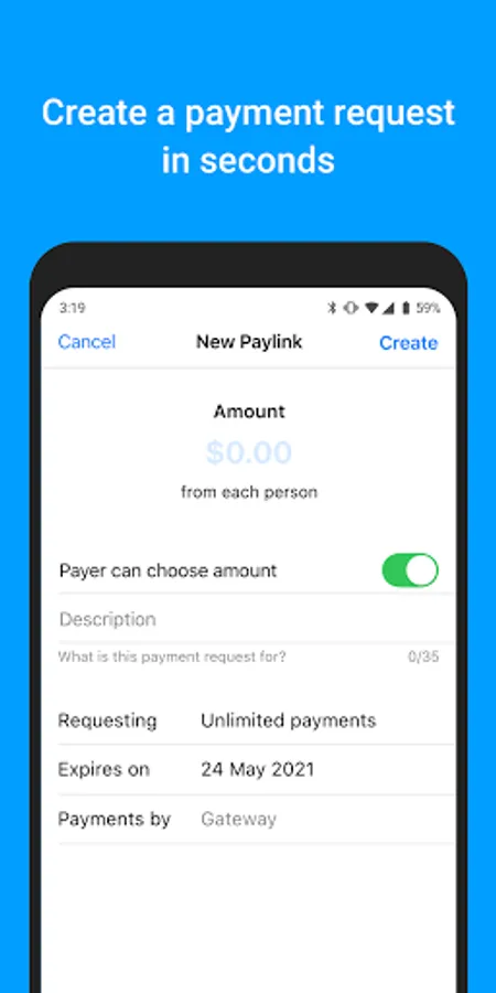 Accept online payments from your customers with ease through payment links: simply create a payment request, generate a link through the app and share it through any medium (e.g., email, messaging apps, social media). Your customers can then follow the link to make a quick payment using their preferred payment method. We support PayPal, Stripe and Square as payment gateways.