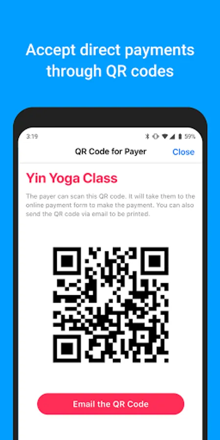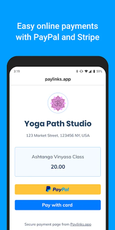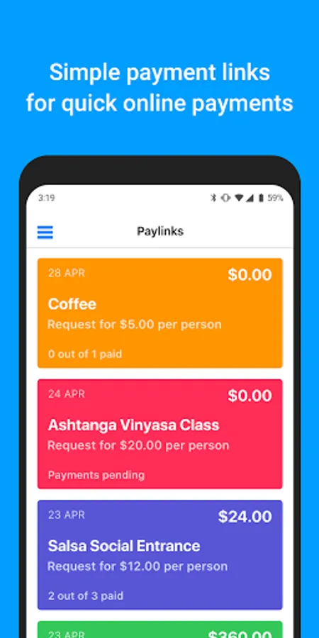 Paylinks is ideal for accepting small-value payments (such as for a yoga lesson or entry ticket to a social dance event): you don’t need any special device like a point-of-sale system or a payment terminal, and you don’t have to send invoices.