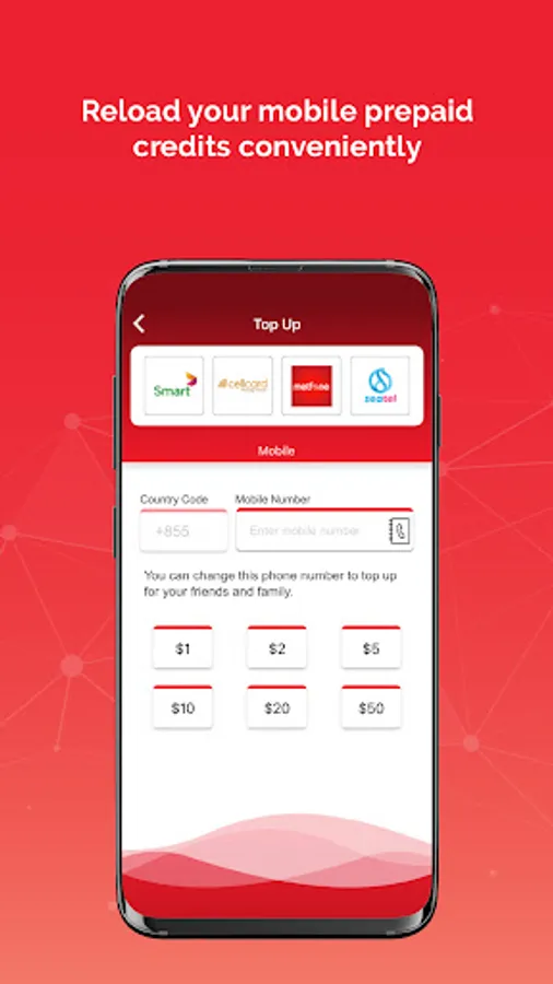 Mobile Top up: Reload your mobile prepaid credits conveniently.