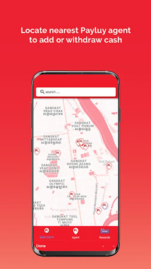 Cash In / Cash Out: Locate nearest Payluy agent to add or withdraw cash.