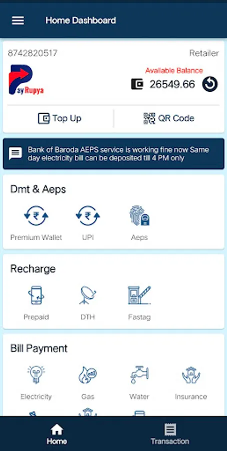 At Payrupya, our aim is to offer you services that you have never experienced before [AEPS,Bill Payment,PAN CARD,Recharge,DMR] that show you that we mean it! Not only have we got the trendiest quality of services, but we can also guarantee that they are of the finest quality.We started as a small business in Payrupya Technologies Group in 2019 and our aim is to continue providing our customers with products that keep them happy, at prices that keep them happy. Our customers are our top priority and through our products we work hard towards building long-lasting and meaningful relations with them.We have a team of highly experienced finance and technology professionals which is always dedicated to problem solving of the customers. The App makes life easier and more comfortable. The platform is very easy to use and there is no requirement of prior technical knowledge to use.We are dedicated to provide one stop solution of all our services. The service is available 24 X 7.This B2B online service is one of the most unique in its kind. Following is the list of our available services: