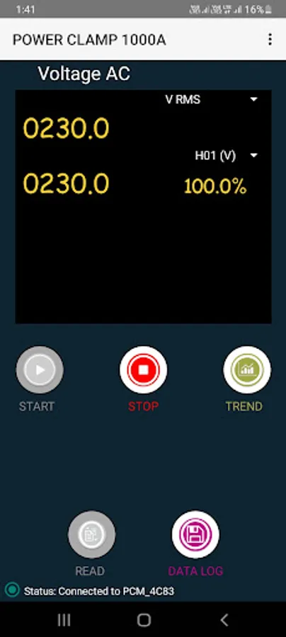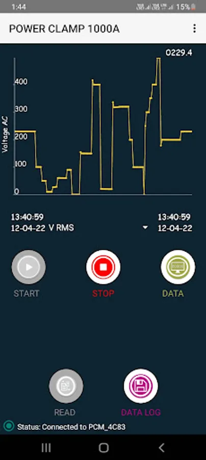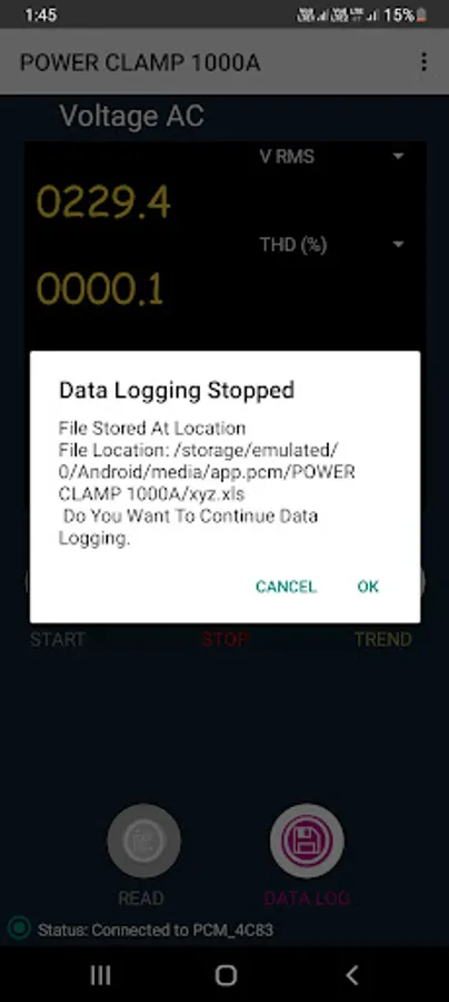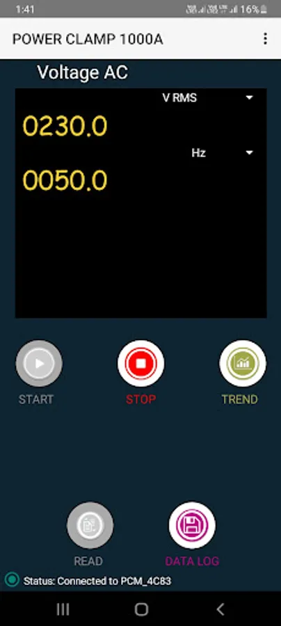 Power Clampmeter readings are displayed, recorded & analyzed using PCM Connect application.