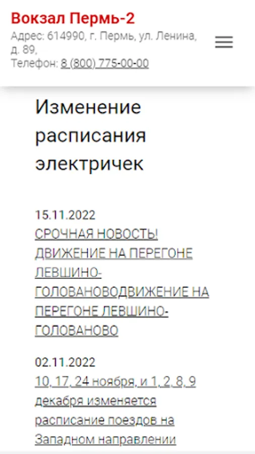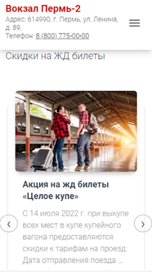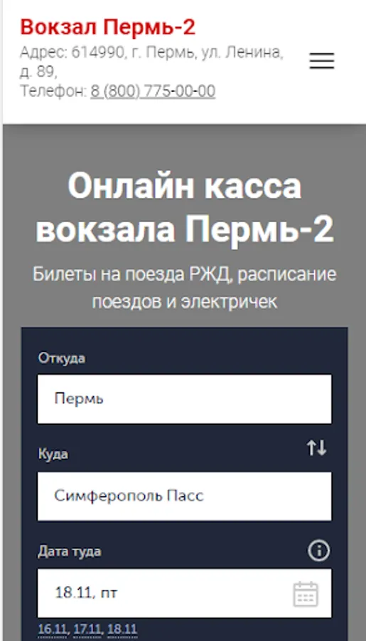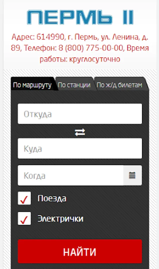 In the application of the Perm-2 station, you can book tickets for Russian Railways trains.