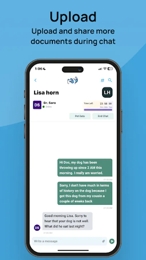 Through the chat interaction, the vet can diagnose the problem and give helpful advice.