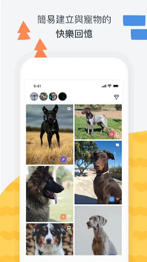 You can see all the photos, videos, and records of all your pets. The filtering function can be faster and more convenient when you are looking for individual pets.