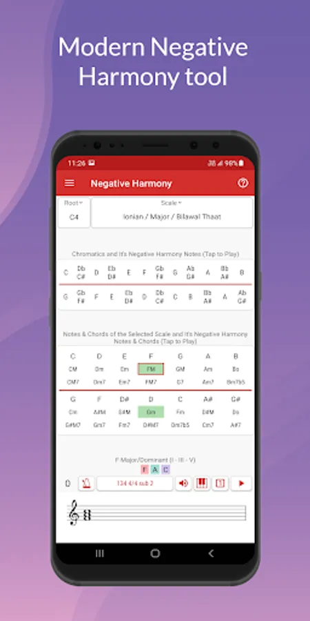 ✅ Music Theory study → This music theory app can be used to study scales and chords for almost all available heptatonic scales and modes. This app contains many music theories articles and it can be used as a music theory free book.