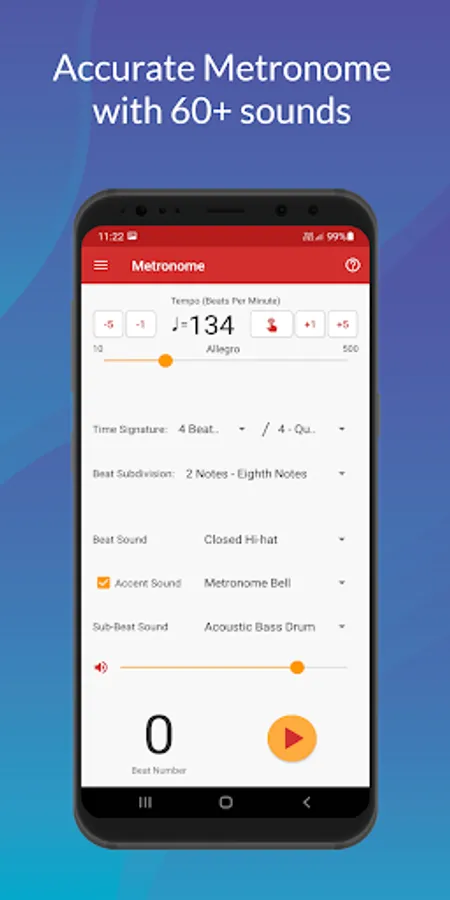 ✅ Metronome beats for guitar, Drum set, Piano, vocal practices. The metronome in this app is very accurate in maintaining timing.