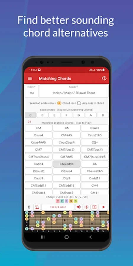 ✅ Chord Finder → All possible chords for all the available scales and modes can be found.