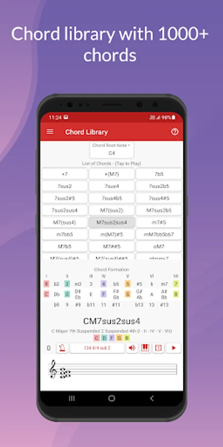 ✅ Chord Library → Chord library with 1000+ chords and also shows chord construction